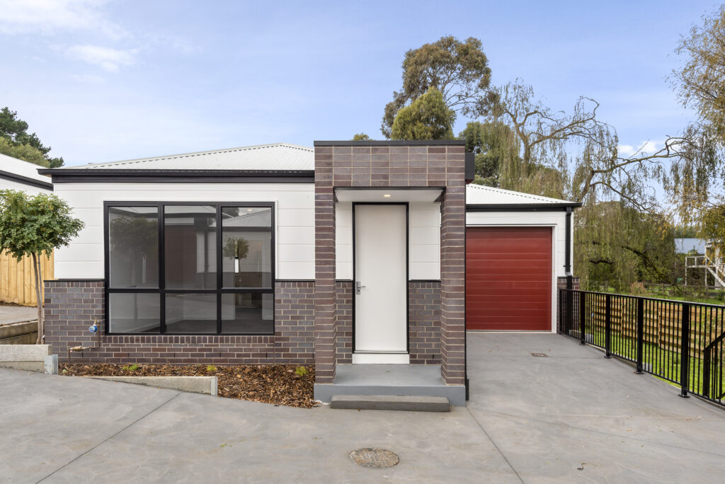 There were some challenges on this project due to a lot of earth works on this property as there is a lot of fall on the land so a lot of concrete sleeper retaining walls, very long concrete driveways, concrete stairs, 80,000 litre in-ground water tanks, 40,000 litre bio retention systems and rainwater tanks to each dwelling. This was my own project and due to covid costs did blow out a little on this project.