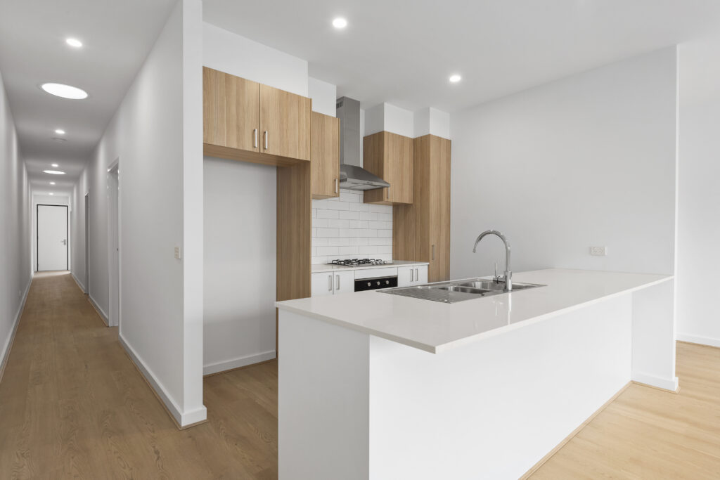 The 3-bedroom units were between 130 – 150m/2 plus double garages and rear decks, with laminate and timber veneer finishes and stone benchtops to kitchen and laundries, hybrid laminate flooring to all living areas and carpet to bedrooms with sliding mirrored robe doors and fully shelved including WIR to master bedrooms.